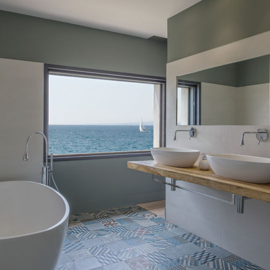 The panoramic sea view from the Mediterranean framed in the expansive floor-to-ceiling windows provide an ideal connection from the open layout interiors to the massive deck, infinity pool and the lush garden. A pure and seamless transition between inside and out
